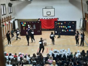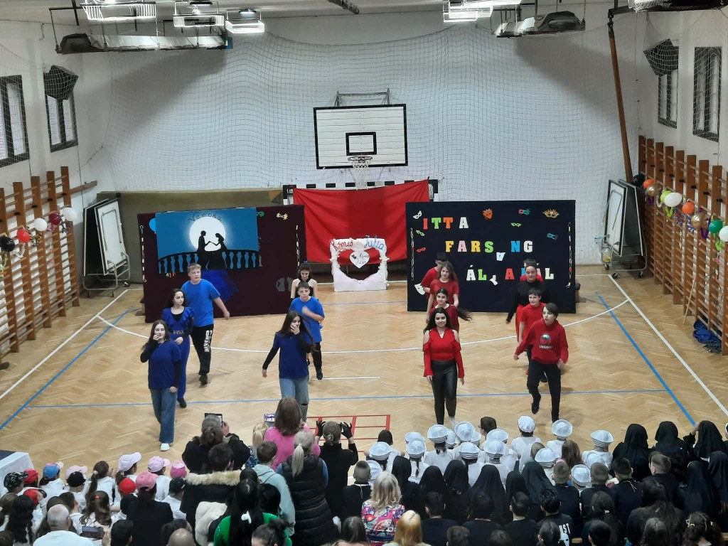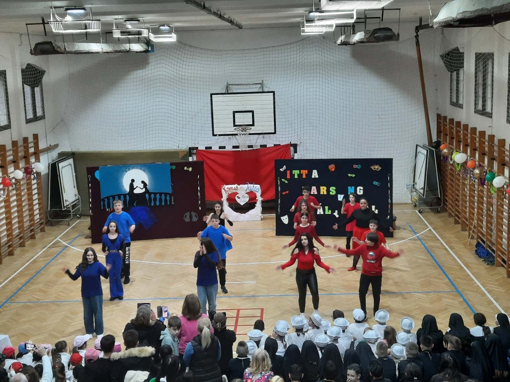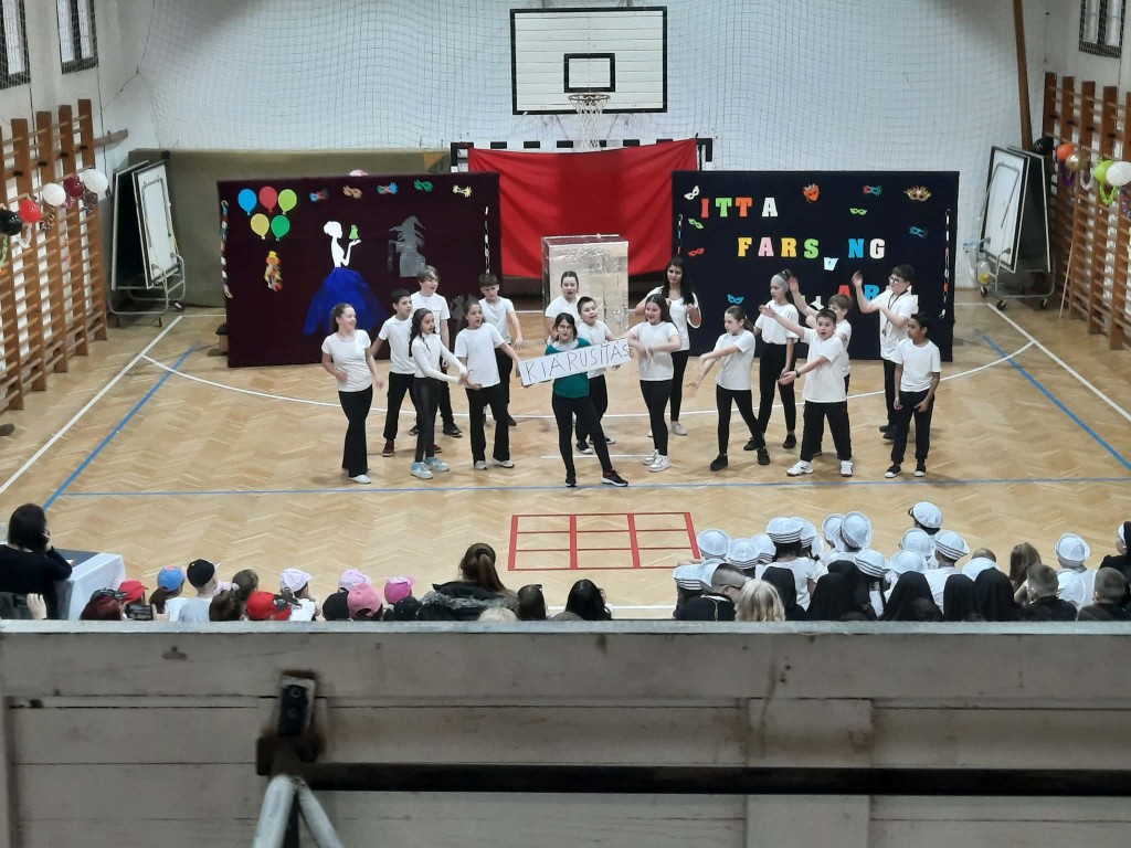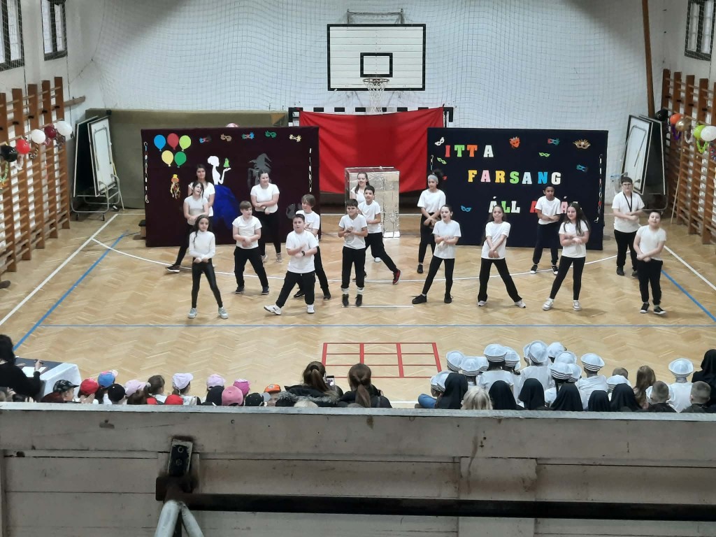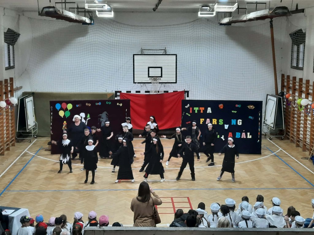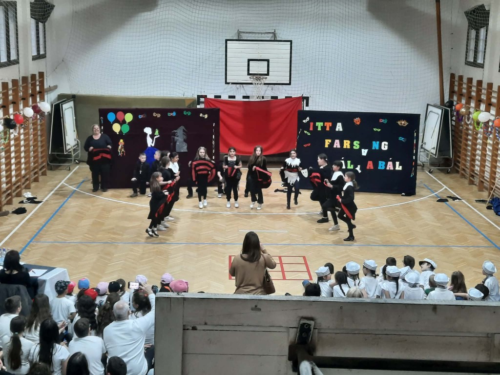 Az 1/e kedves kis csapata nyitotta a bált. Játékos, vidám táncuk magával ragadta a közönséget. A színes pomponokkal ügyesen ropták a táncot. A 2/e osztályosokkal „tengerre” szálltunk. A csintalan tengerészek nem féltek megmutatni tánctudásukat. Papok és apácák jelmezét öltötték magukra a 3/e diákjai. Az „angyali” szereplőktől egy kis huncutság sem állt távol. A produkciót lendületes kánkán tánccal zárták. Ezen a délutánon a 4/e. osztály egy „varázsdobozzal” érkezett hozzánk. Hogy milyen táncok bújtak el benne? Hamar kiderült. „Változó idők” címe volt az 5/e. osztály műsorának. Céljuk egy gondolat, egy érzés felébresztése volt, egy kis humorral fűszerezve. A 6/e osztály „feltörte” a Kréta naplót, hogy jegyeiket kijavítsák, ám hamarosan kiderült, hogy mindennek következménye van. A 6/f Shakira Waka Waka slágerére hívott bennünket táncot ropni. A 7/e osztállyal egy kicsit Veronába repülhettünk. Az osztály tánca és a „Lehetsz király” zenéje magával ragadta a közönséget. Végzős diákjaink az illúzió és a valóság határán „táncoltak” Egy idő után már magunk sem akartunk hinni a szemünknek. „Kicsi” emberek, vagy csak érzéki csalódás?